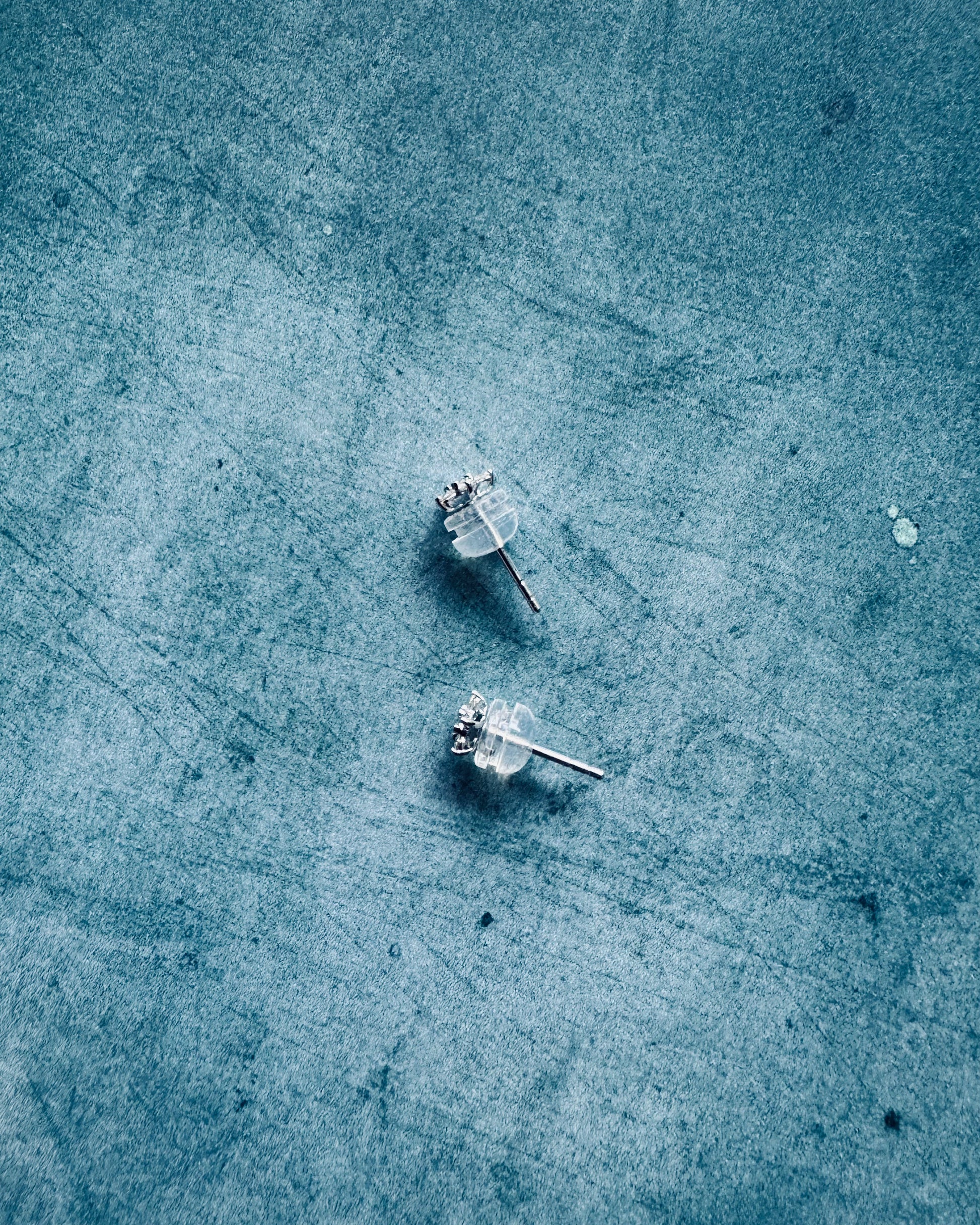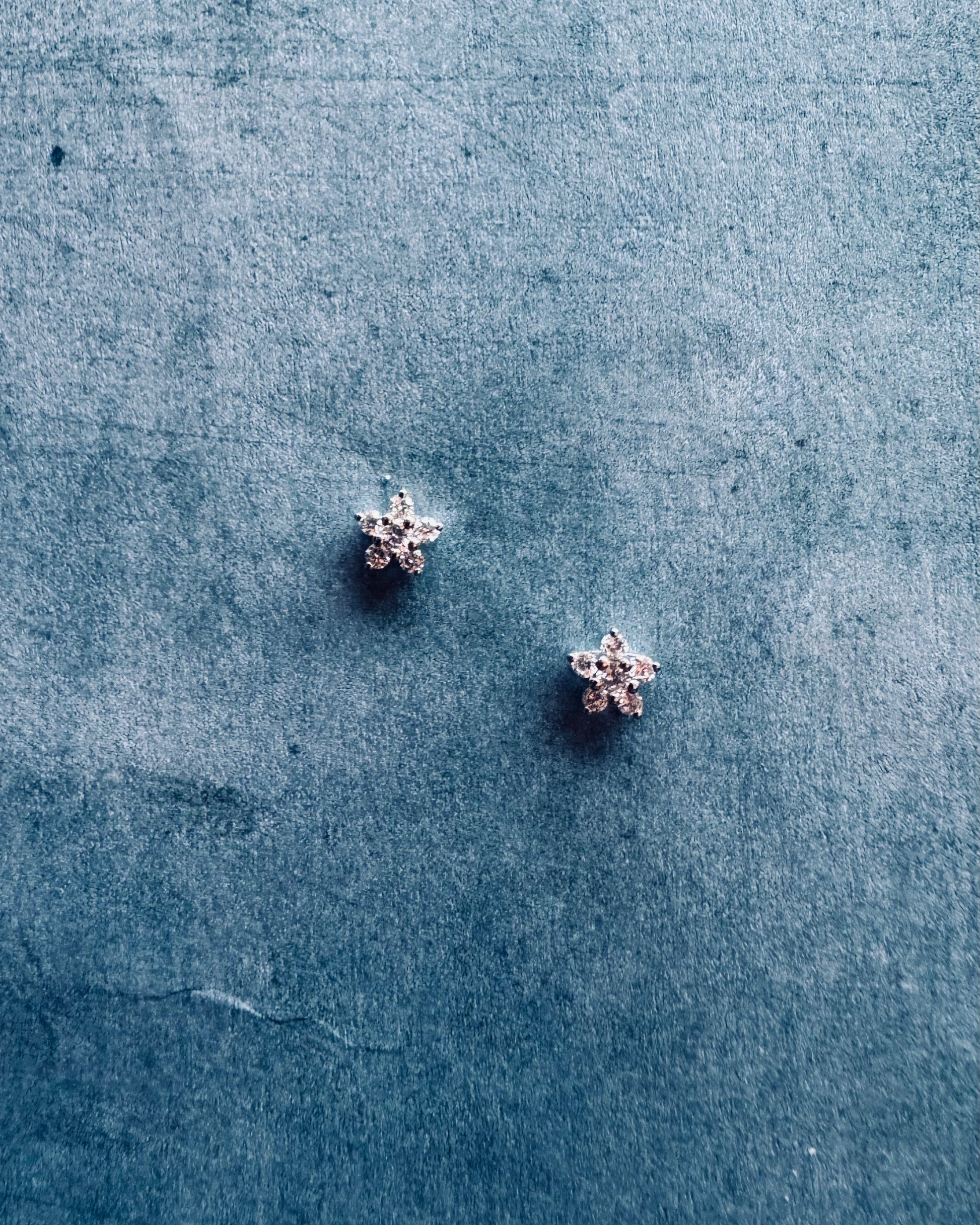 18K White Gold natural diamonds 5 leaf petal stud earrings