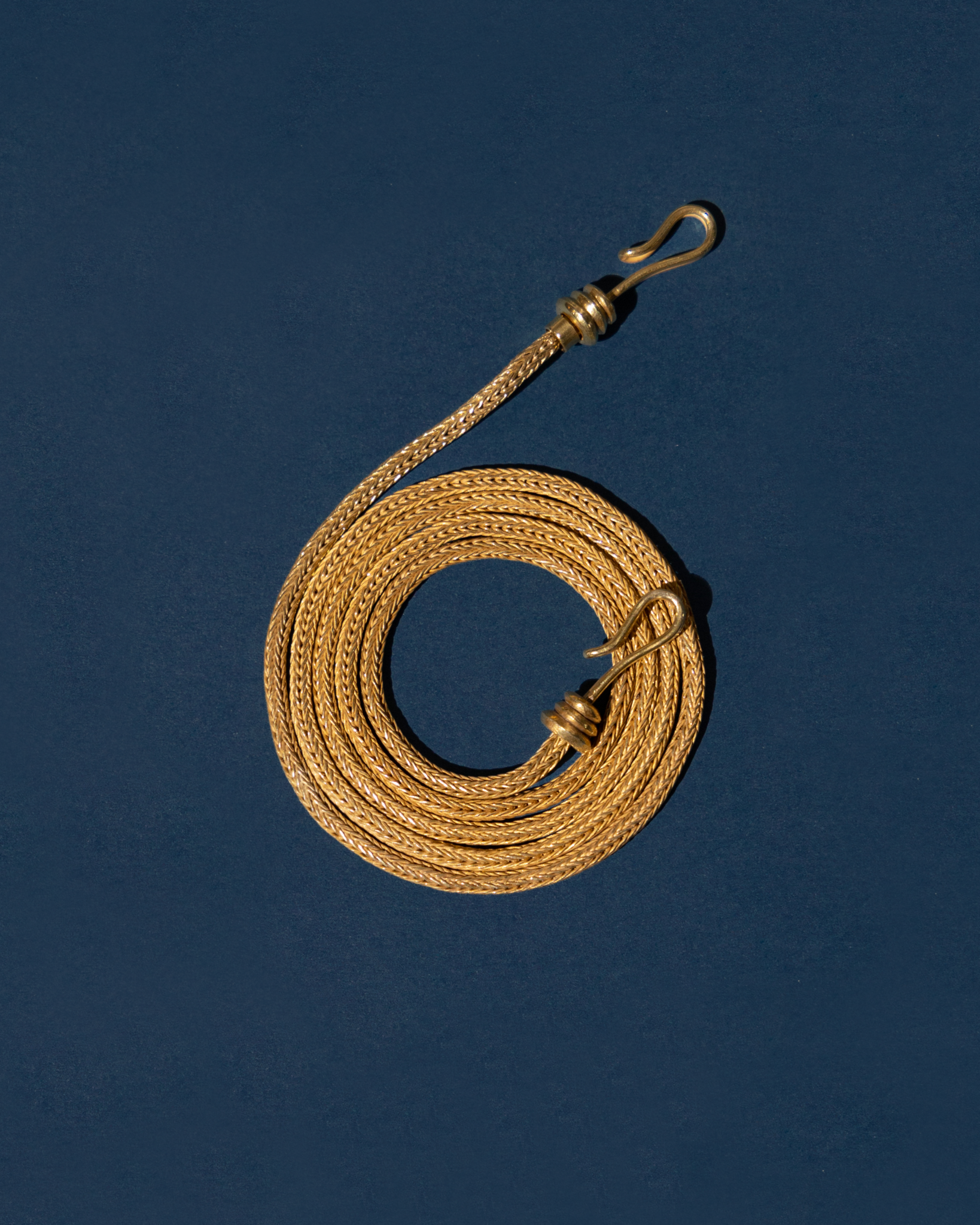 This handwoven 18K solid gold necklace comes with a cleverly concealed screw lock, allowing you to seamlessly integrate any pendant.