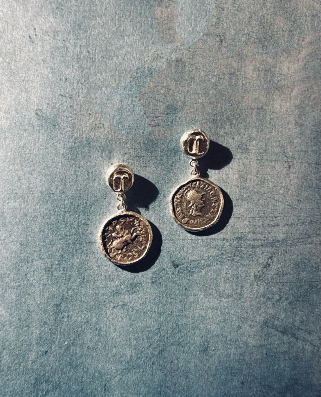 A reproduced silver coin, encased in handcrafted sterling silver.