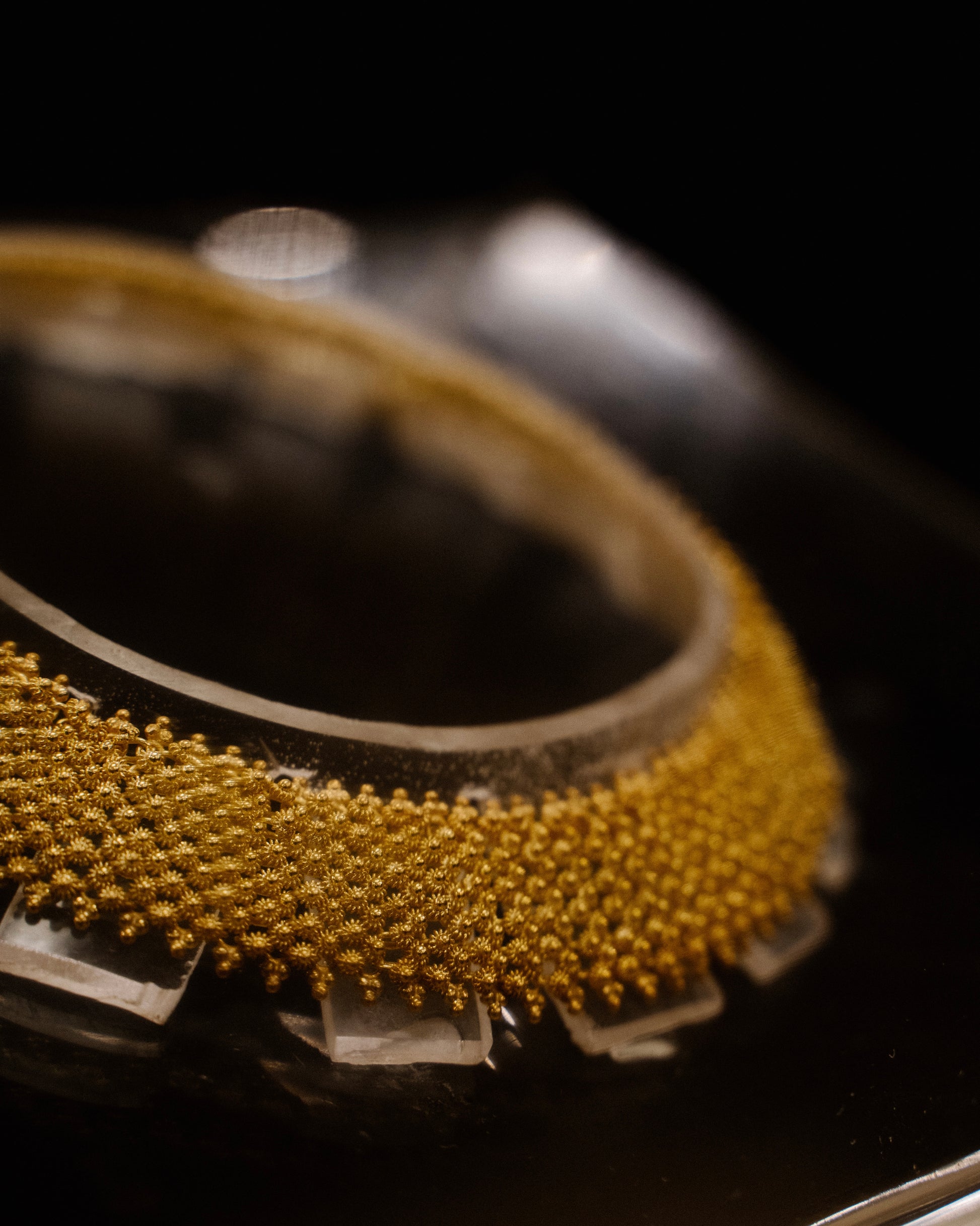 Each spiral bead is painstakingly handcrafted, with no machinery used in the necklace's creation. Solid gold ores are forged into thin fibers, almost as fine as human hair, requiring six months to complete.
