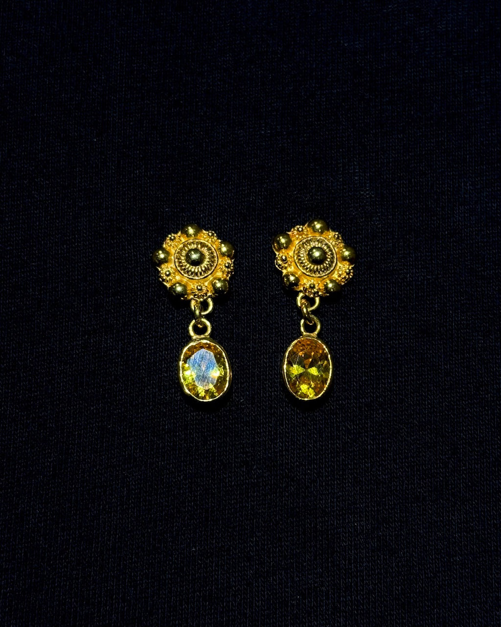 Crafted by hand, every Hacienda base boasts unique patterns without any repetition, showcasing a stunning saturated oval citrine drop. Last 1.