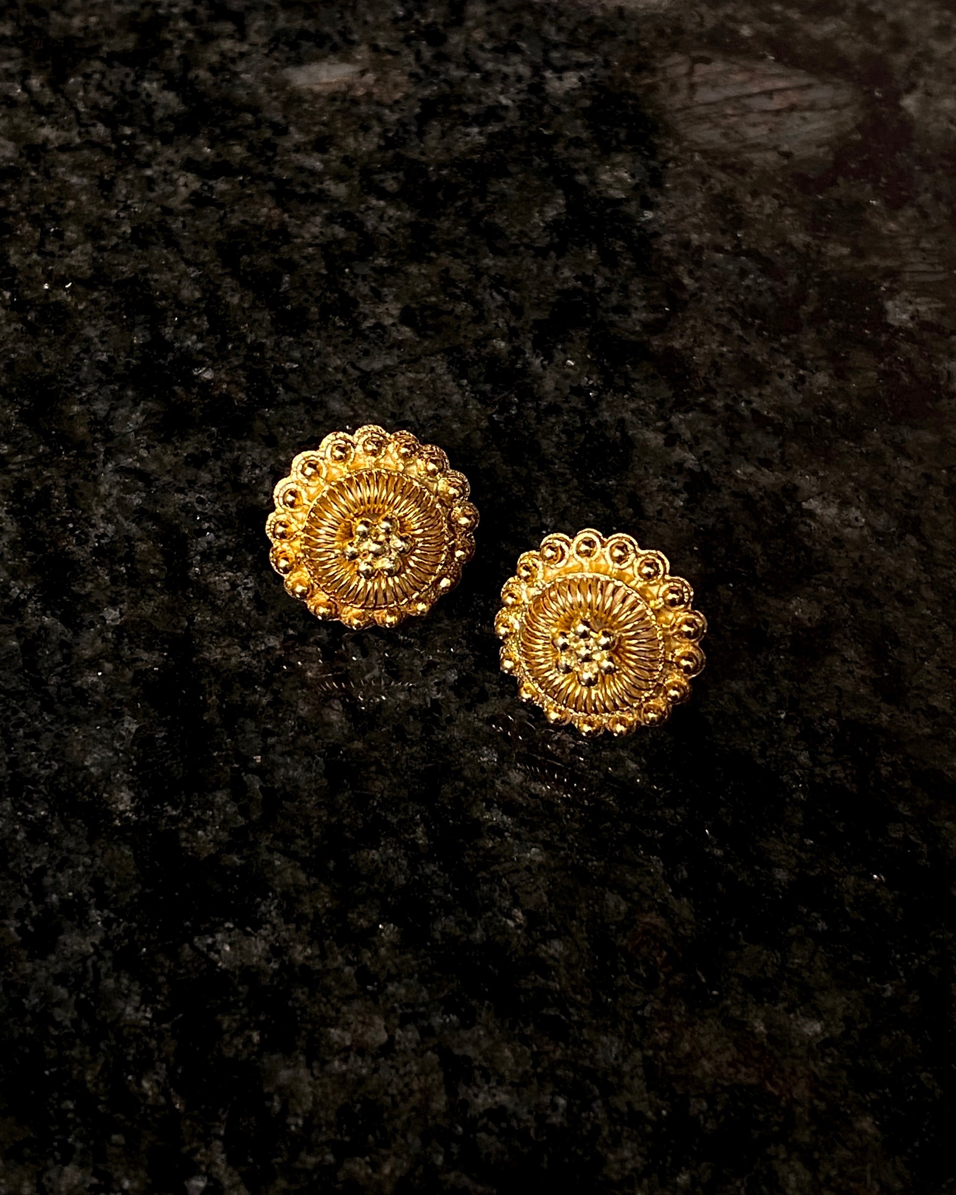Seventeen minuscule spheres embrace a hand-coiled spring at the center, with a 7-star center bead enhancing the complexity of our Hacienda stud earrings.