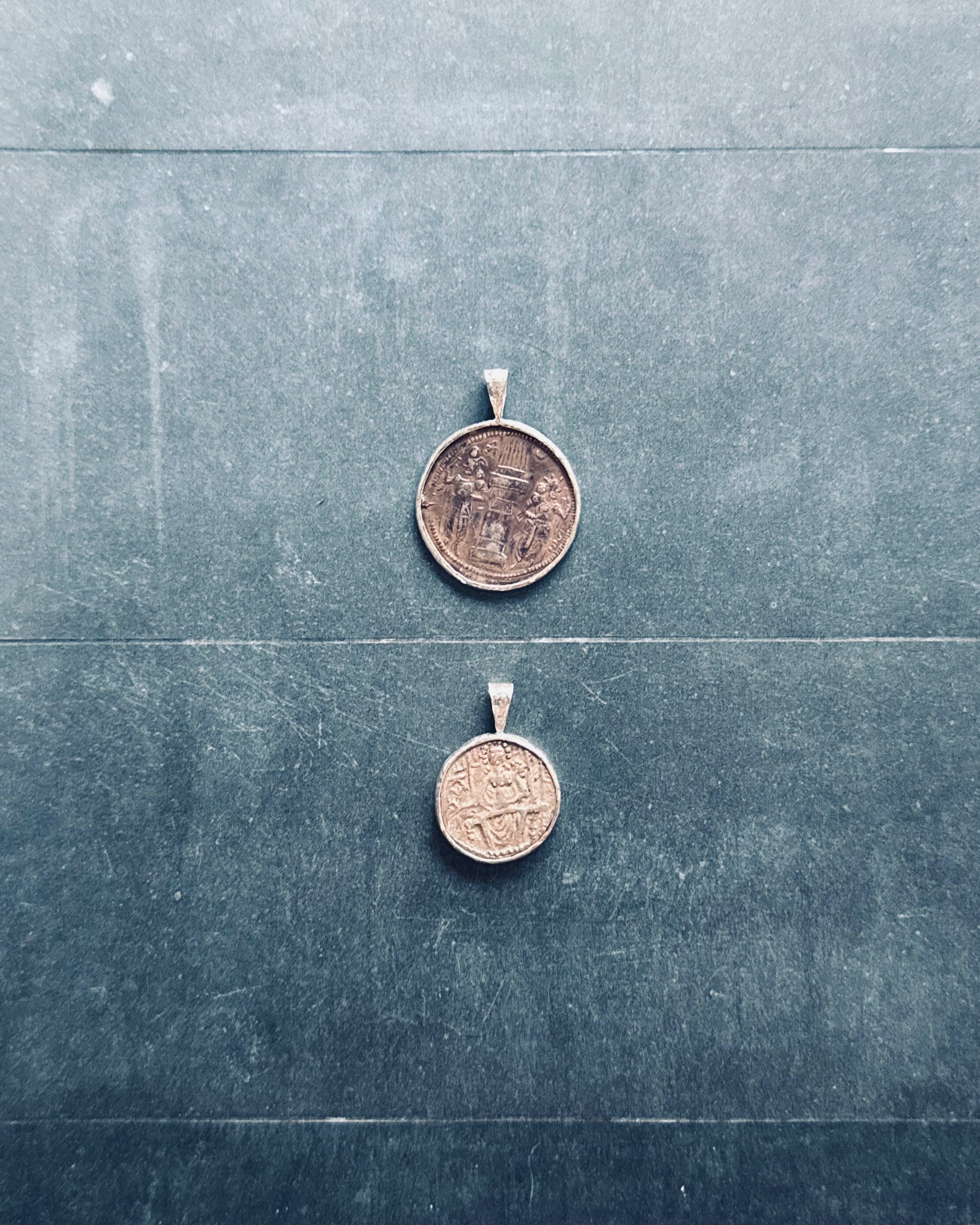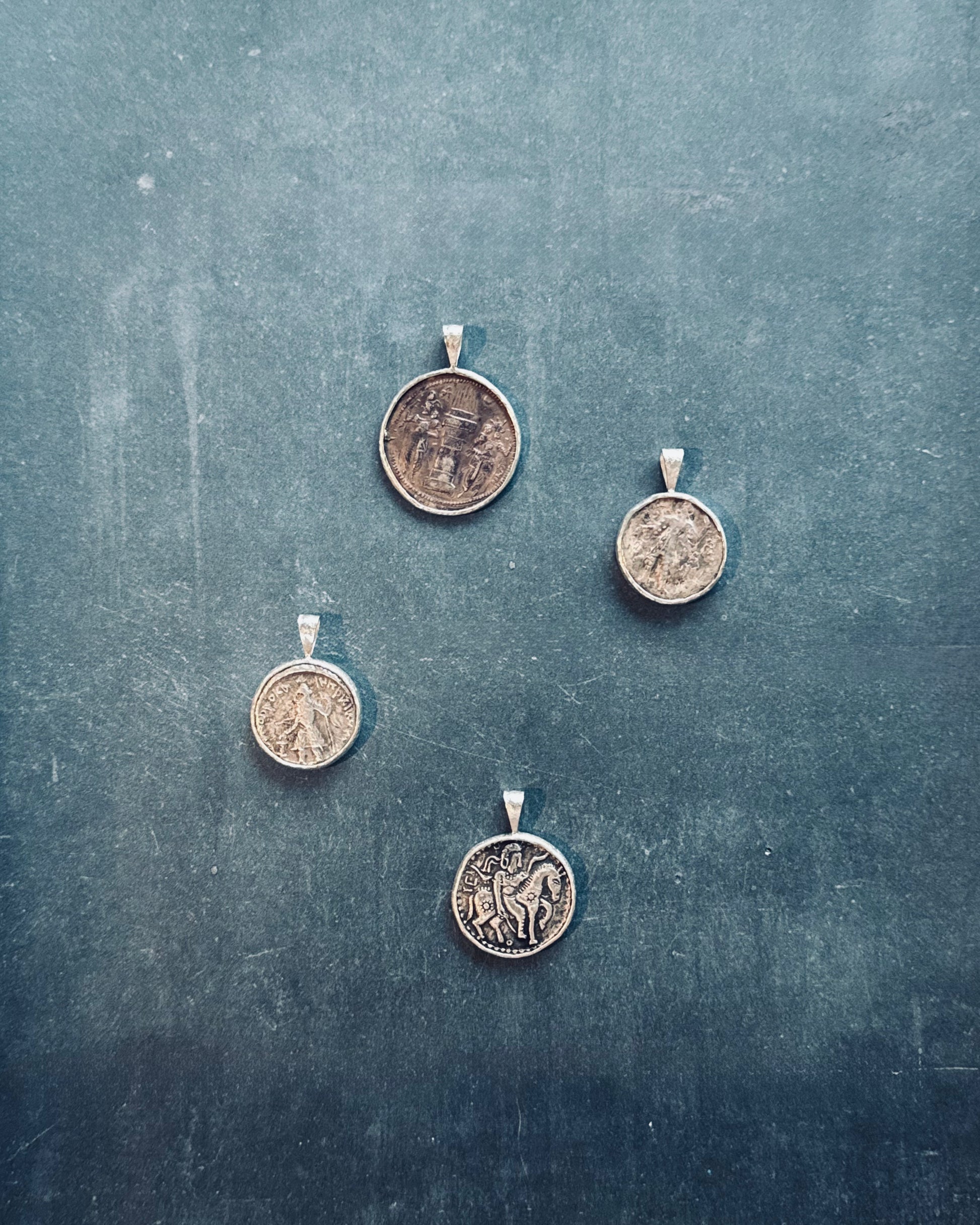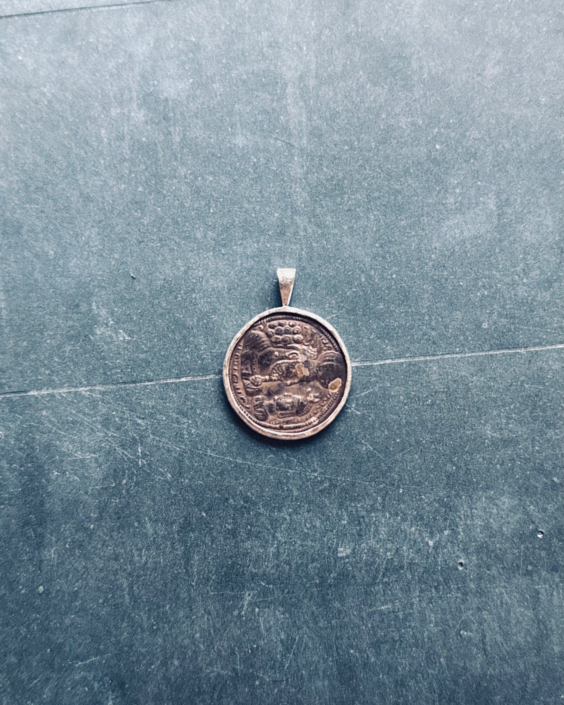 A reproduced silver coin, encased in handcrafted sterling silver.